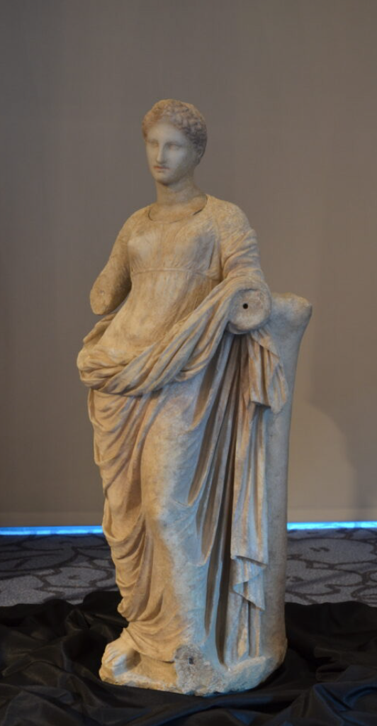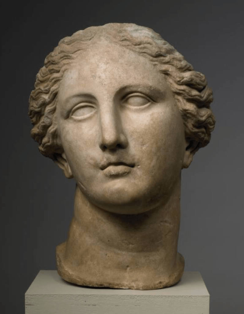 But to return to the Greek and Roman collections: until her death at eighty-three in 2011 (Michael Carlos had died in 2002), Mrs. Carlos continued to actively support Gaunt’s purchases, as is clear in the Atlanta Journal-Constitution story “Herculean Try of a Goddess,” in which she is reported to have given him the go-ahead to bid beyond his limit at a Sotheby’s auction in December 2006—and win the prize, an over-life-size head of a goddess (shown below), with a bid of $420,000.